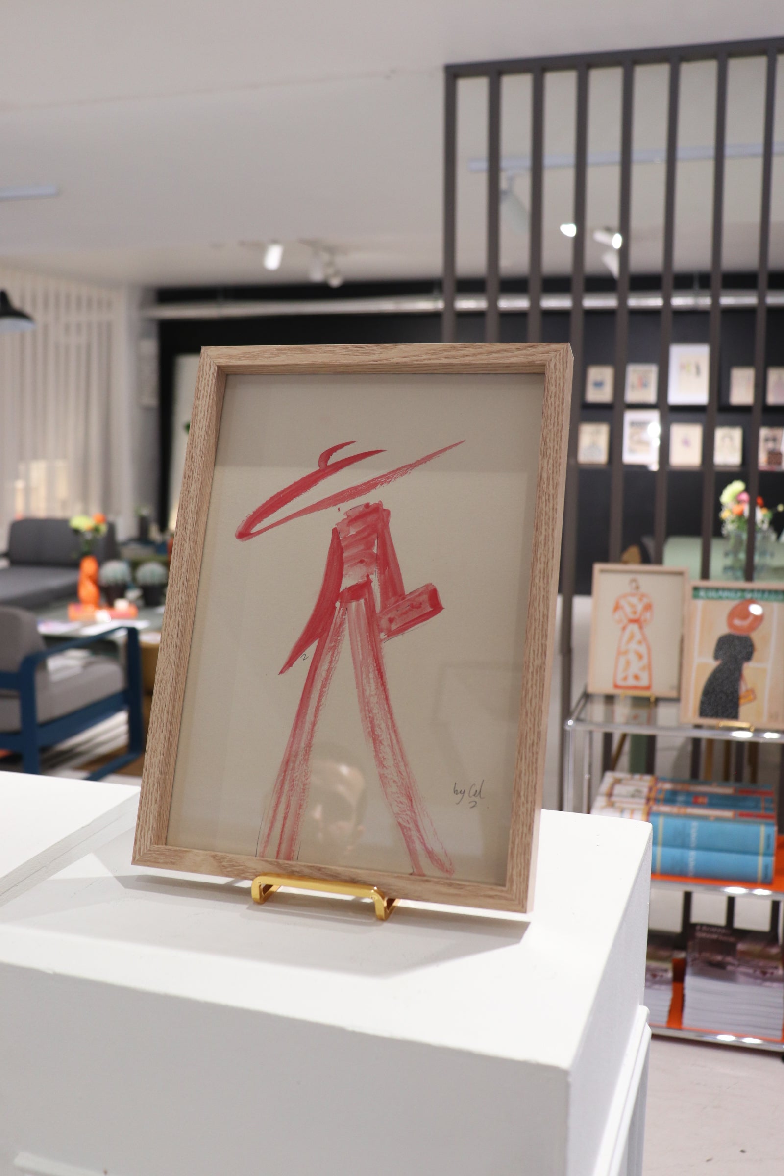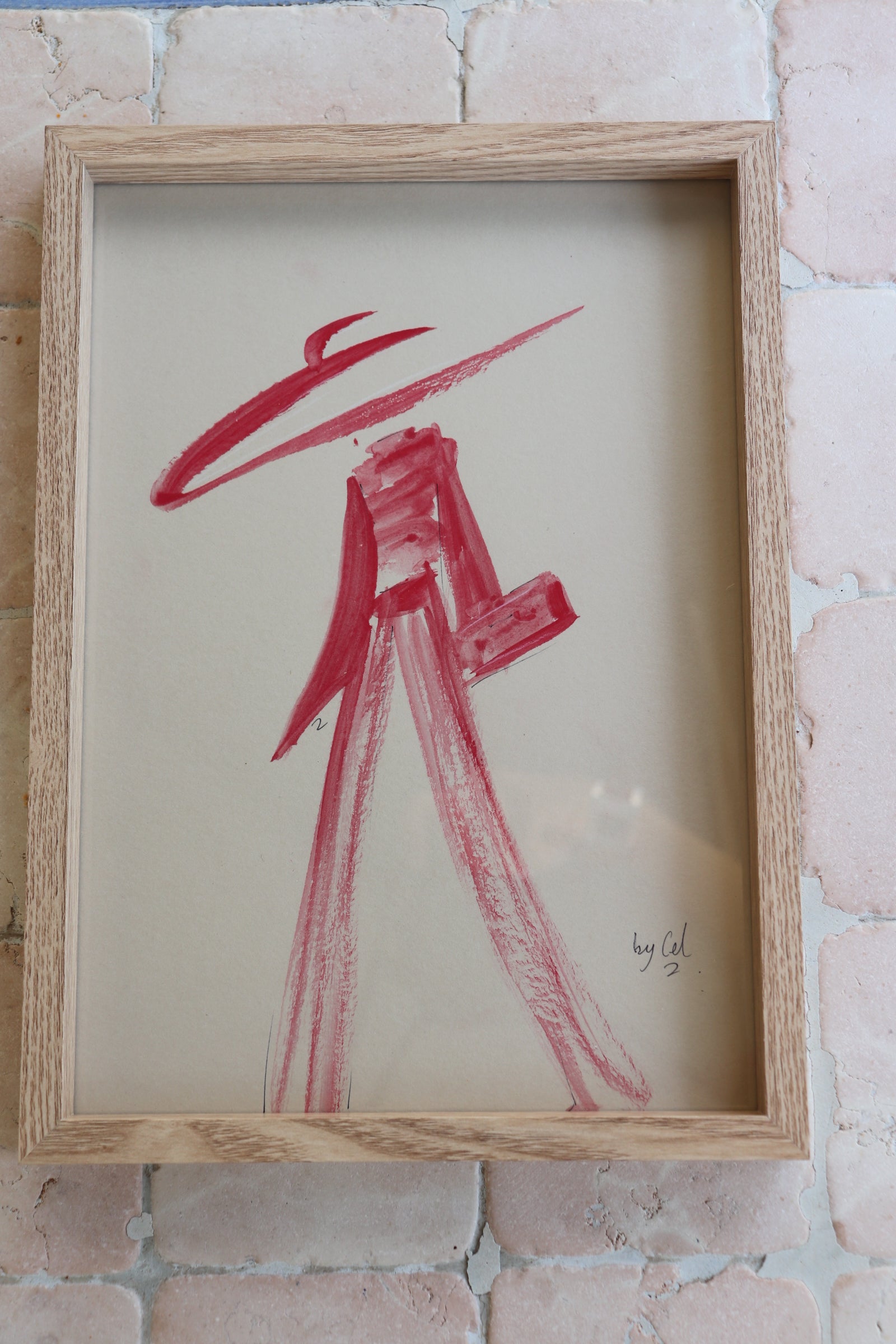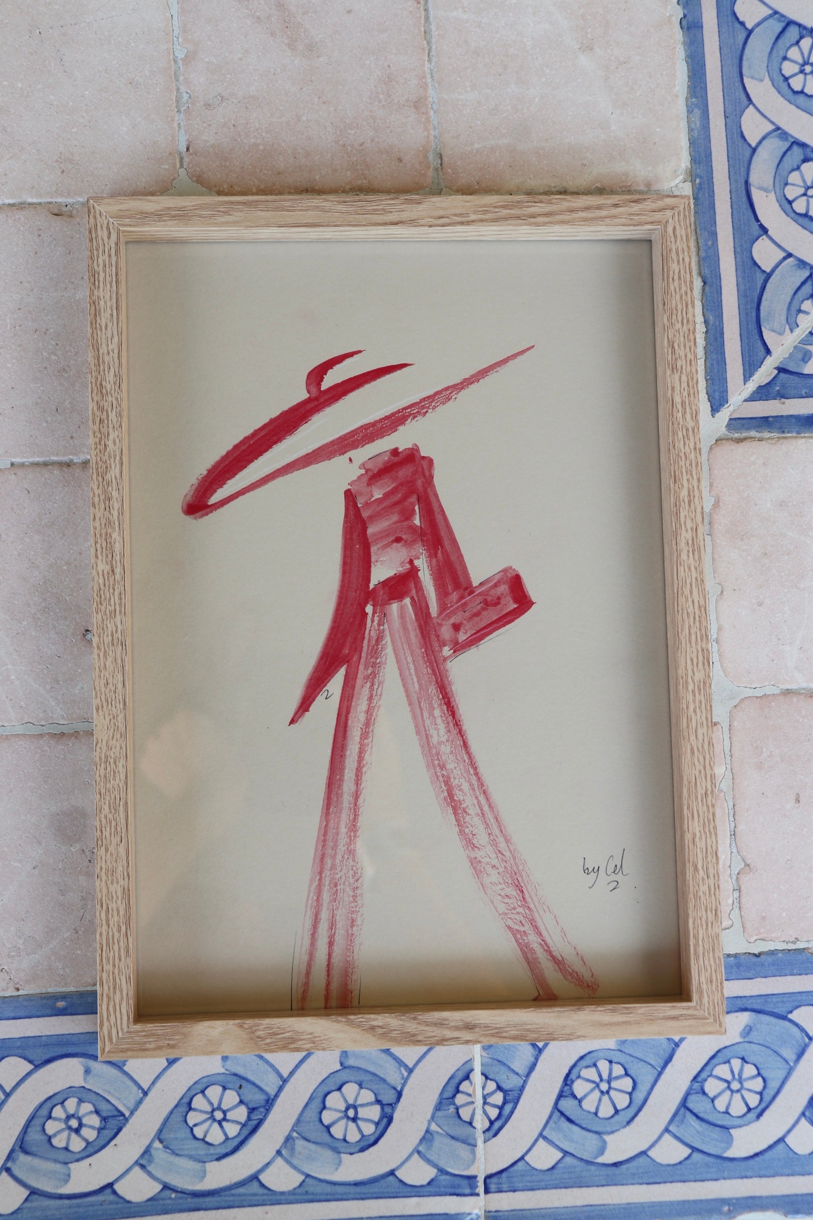 Une pièce unique, peinte à l’aquarelle, issue de la collection « Déhanchée » en hommage au célèbre sculpteur grec #polyclete. Ici, une femme à la présence affirmée, coiffée d’un grand chapeau, incarne l’élégance sculpturale. Le rouge intense, comme un drapé de haute couture, donne puissance et caractère au trait.